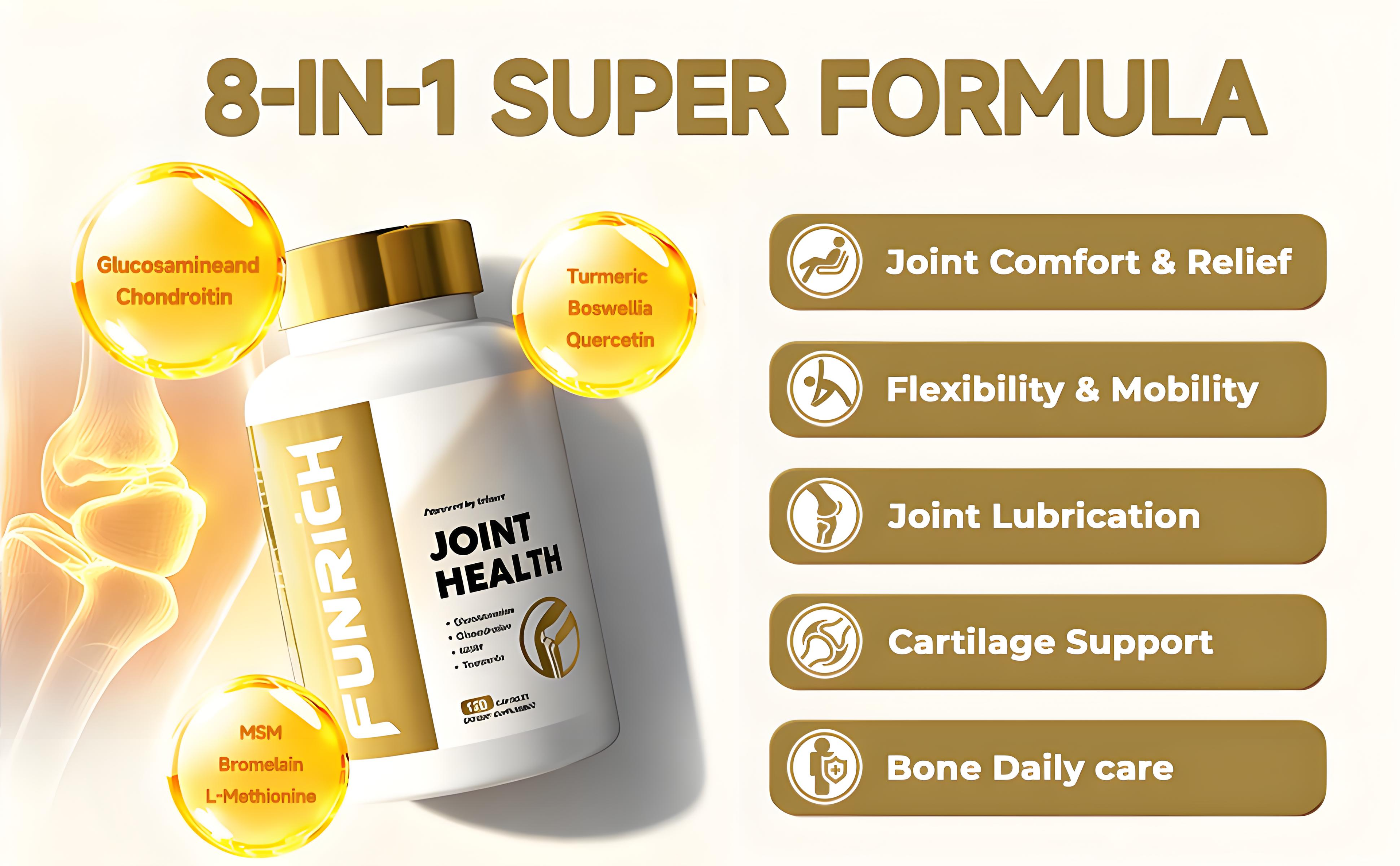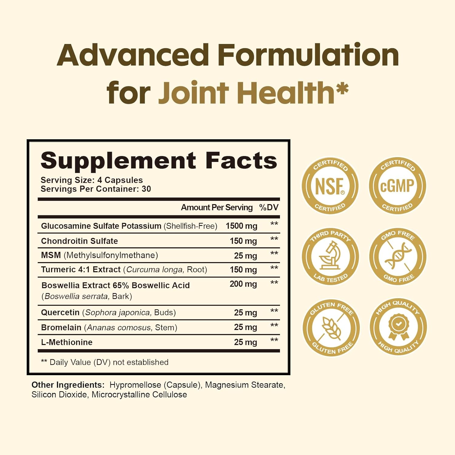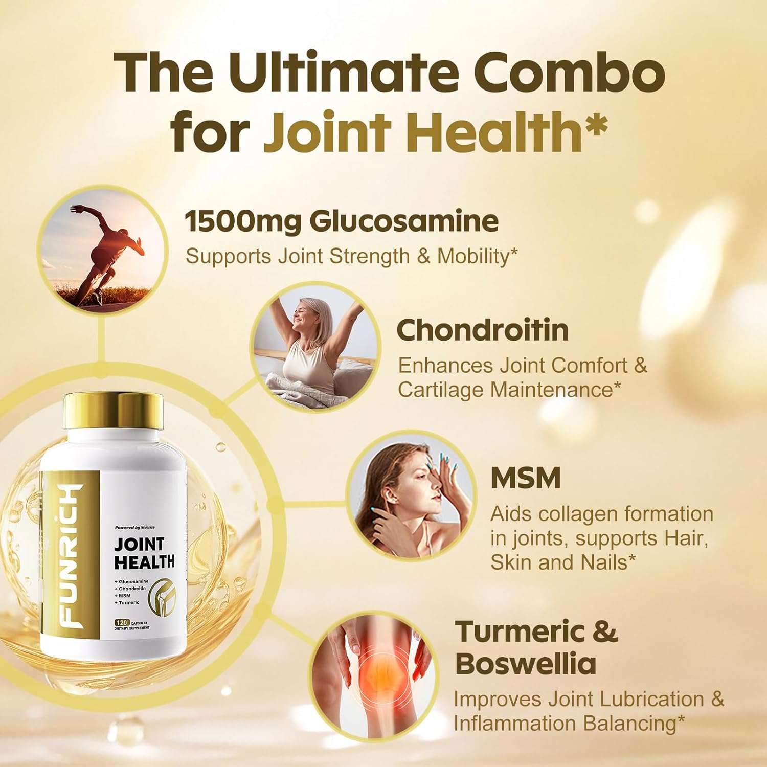 Our advanced joint support formula is designed to keep you moving with ease. Experience the power of Glucosamine, Chondroitin, MSM, Turmeric, Boswellia, Bromelain, and Quercetin for optimal joint care.
