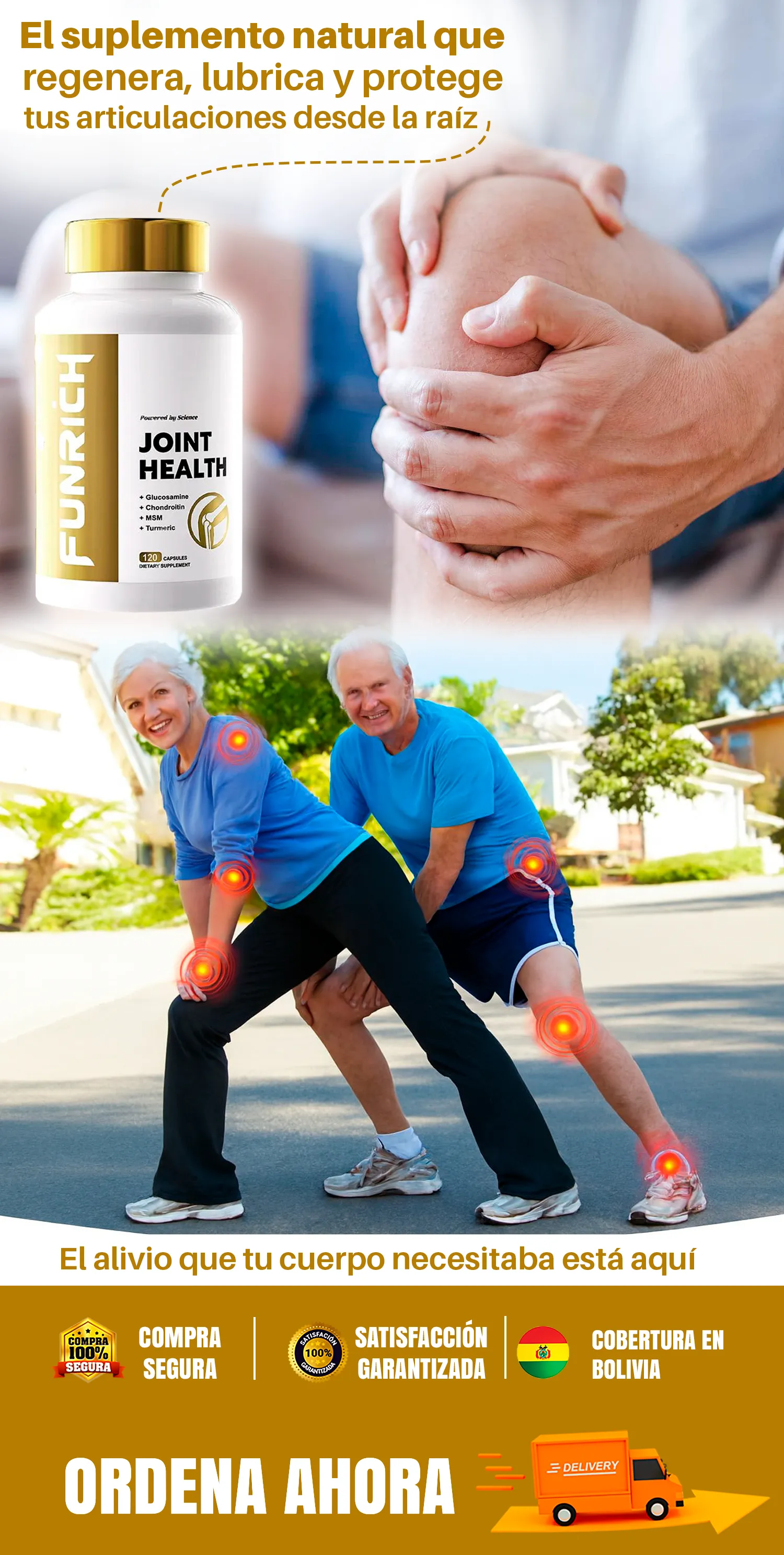 Contiene una potente mezcla de Glucosamina, Condroitina, MsM,Cúrcuma y Colágeno tipo ll, que trabajan en sinergia para restaurar lasalud articular desde adentro.
